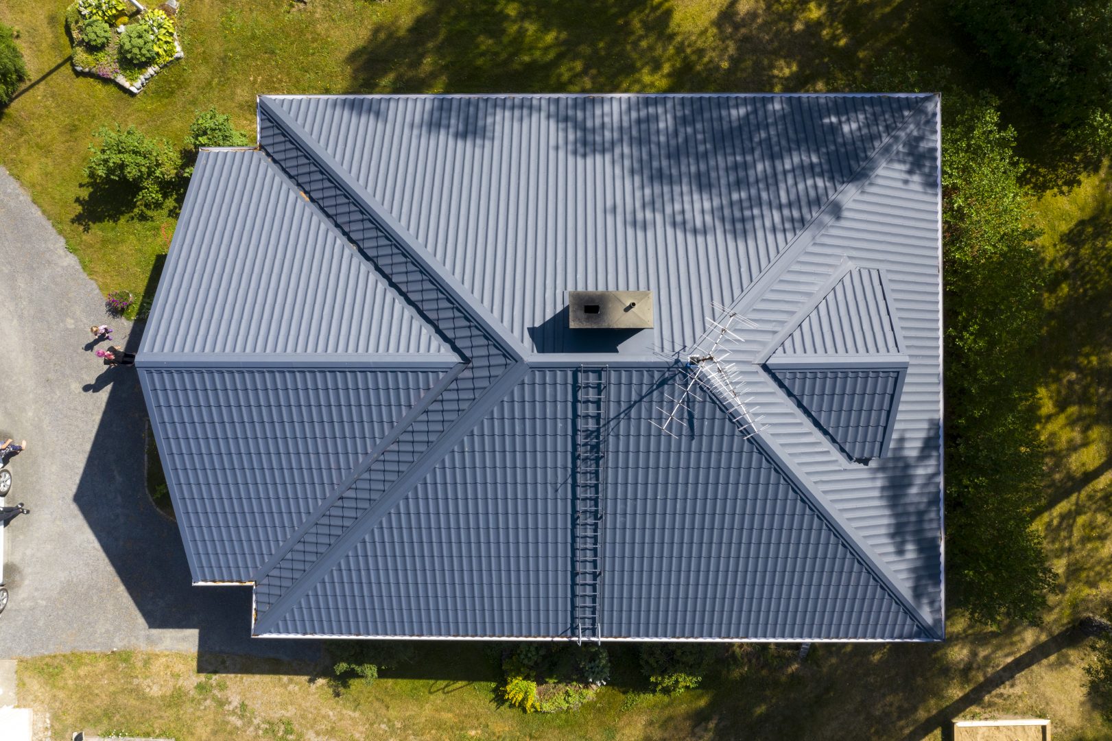 - Viimeistely: Läpiviennit, pellitykset, räystäät, vesikourut ja kattoturvatuotteet viimeistellään.