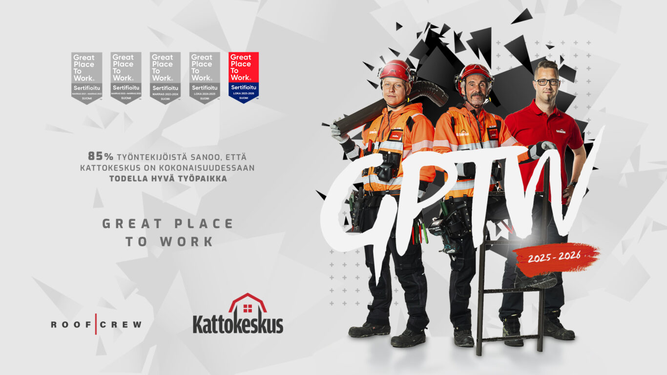 Tuoreimman eli lokakuussa 2025 järjestetyn Great Place to Work® henkilöstötutkimuksen perusteella 85 % sanoo, että Kattokeskus on kokonaisuudessaan todella hyvä työpaikka.